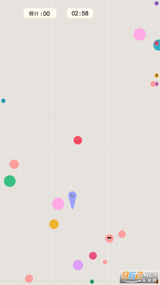 不断地吞噬周围的小点点,壮大自己,直到最后的胜利!