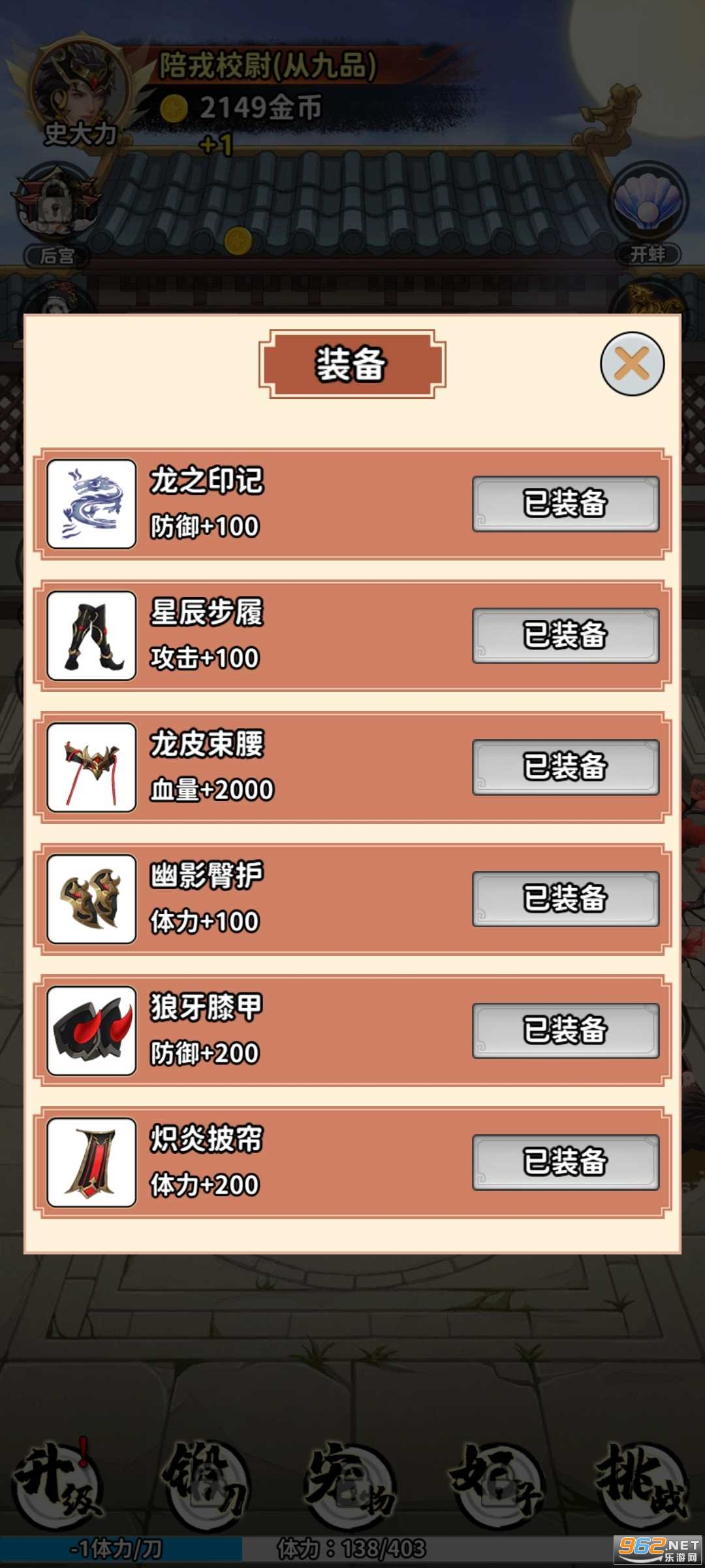 你将在游戏中通过点击屏幕来完成对应的挑战,解决不同的问题来获得对应的奖励,获得厉害的装备来提升自己的实力,完成更多的挑战让自己变得更强,不断变强来成为一代将军。