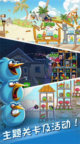 这里需要注意的是:每关所使用的鸟儿越少,评价将会越高,获得的分数越讲越多;并且越往后的关卡可使用的小鸟越来越少、小,并且保护猪头的障碍物也将越来越复杂。