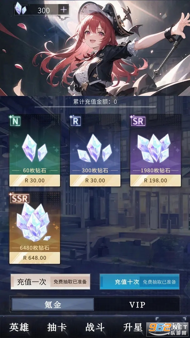 钻石全靠抽卡!抽到R=300钻石,SSR=6480钻石,一进游戏就开抽!在这里,运气就是一切,只需抽抽抽就能还原氪金大佬的快乐抽卡体验!