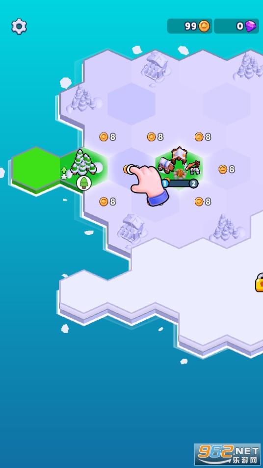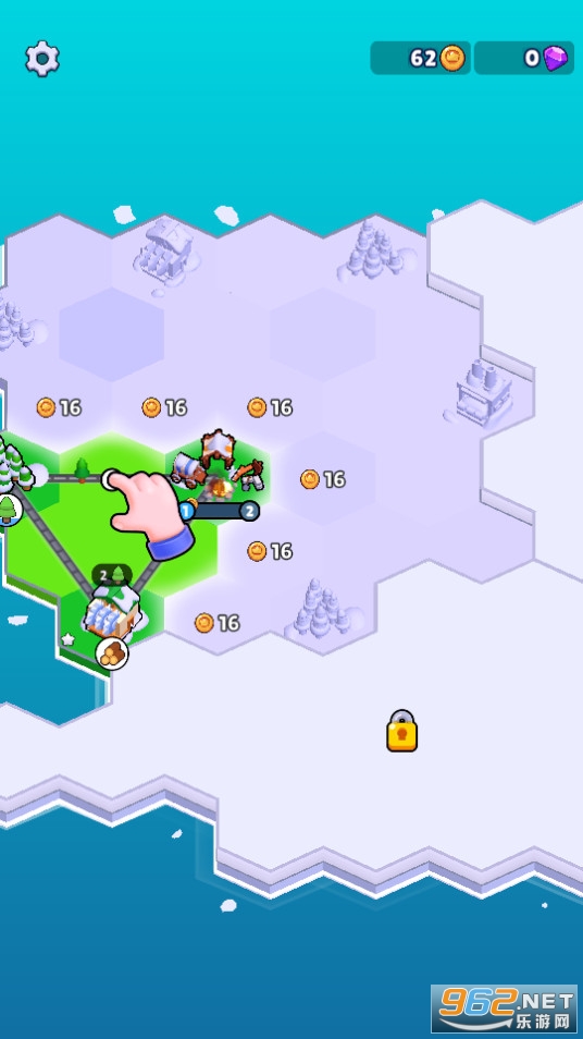 夺取寒冷:当您从冰的控制中解放每个六角格时,收集硬币以发现下一个结霜区域。在你的雪域未被发现的角落里有什么秘密和资源等待着你?
