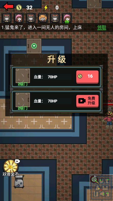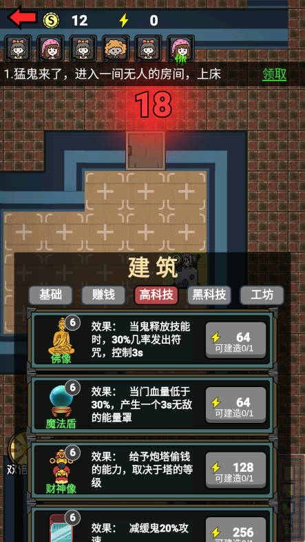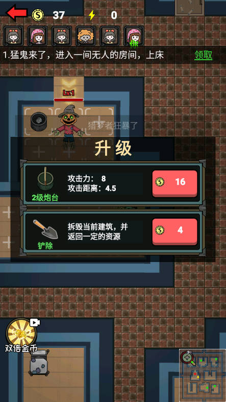 5、获得金币后,优先加强房门和升级炮台,保证房间的安全性。