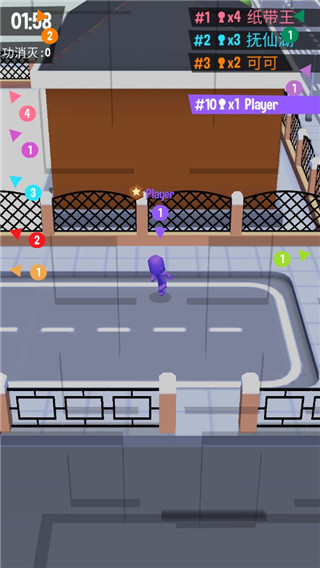 1、开局要迅速找到小白人,只要靠近小白人,小白人就会被染成和你人物相同的颜色,你的队伍就壮大了