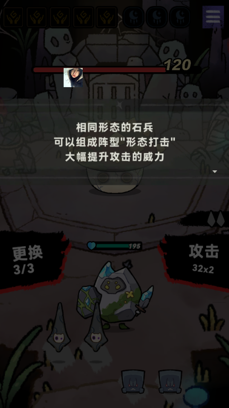6、相同形态的石兵,可以组成阵型"形态打击"大幅提升攻击的威力