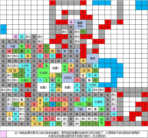 1、农田先放在靠近居民区的任意地方,出官署后建好官署就能把农田拆了(如果居民到不了官署可以等买马了再拆田,也可以不拆),建集市主要是为了发现工艺品,点数不够的时候多建些公园就行了,点数够了就把公园拆了。农田和公园不需要之后都可以换成驿站。