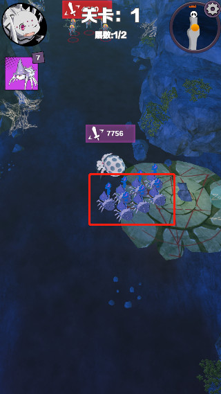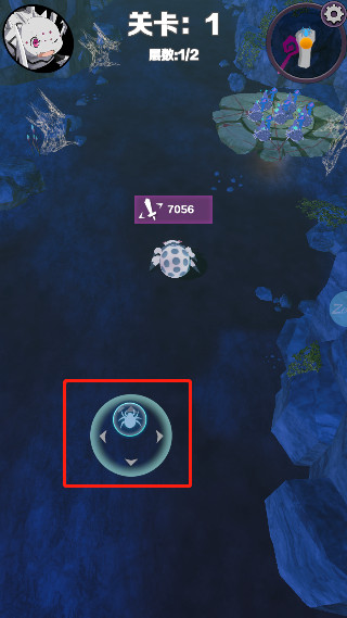 3、战斗中玩家通过点触屏幕唤出移动遥感操作小蜘蛛进行移动