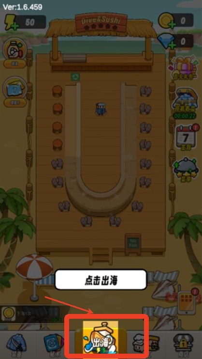 1、玩家进入游戏点击下方的出海”寻找食材。