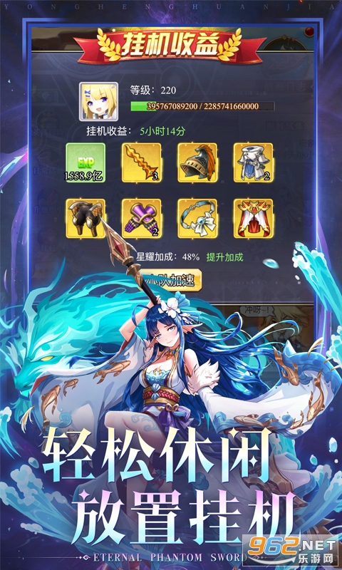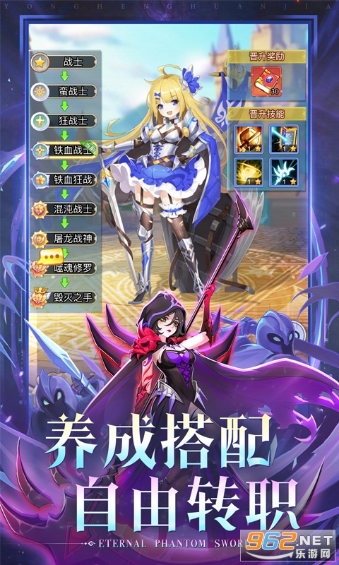 《永恒幻剑》是一款二次元卡牌回合制放置游戏。全新设计的精美英雄模型,带您进入一个崭新的异世界;休闲放置的玩法,生动精彩的野外探索,让您在轻松愉快之余,仿佛置身真实的世界之中。游戏中您可以获得高星,给英雄升级、转职、穿戴装备、上阵/升级侍从,这些可以有效提高战斗力,而策略放置英雄的位置更可大幅增加胜率,助您一路闯关推图!