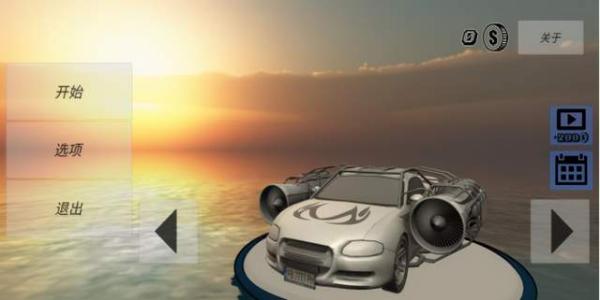 主界面左侧设有开始游戏、设置和退出按钮,右侧上方为游戏介绍入口,金币数量清晰显示其下。金币主要用于车辆性能升级,在这款节奏紧凑的游戏中至关重要。下方设有观看广告获取资源和每日签到功能,都是积累金币的有效途径。