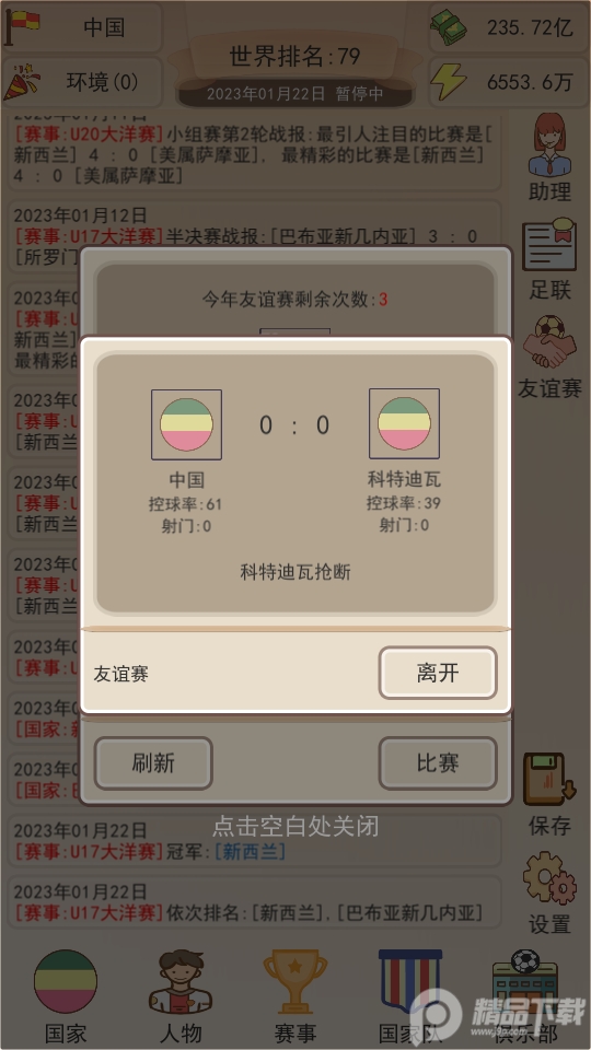 足协模拟器是一款文字模拟器类的足球游戏,喜欢玩足球游戏吗?可以试试这款超级有趣的文字类足球游戏,足协模拟器,游戏破解了无限货币,大量的初始货币,可以更好的体验游戏中的所有内容,控制角色轻松操作。