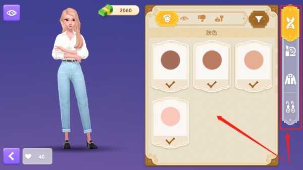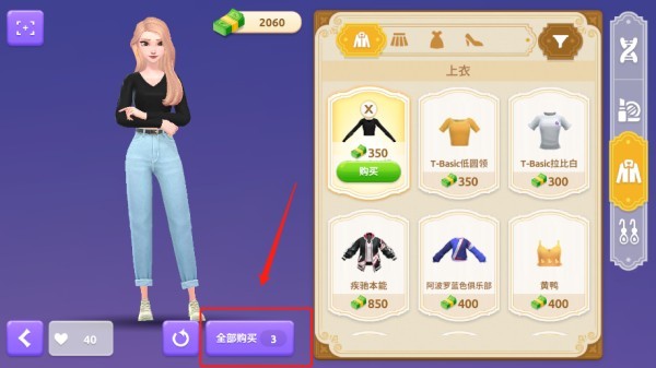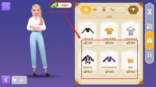 3、在右侧界面中浏览各类服饰,挑选喜欢的款式进行购买和更换。