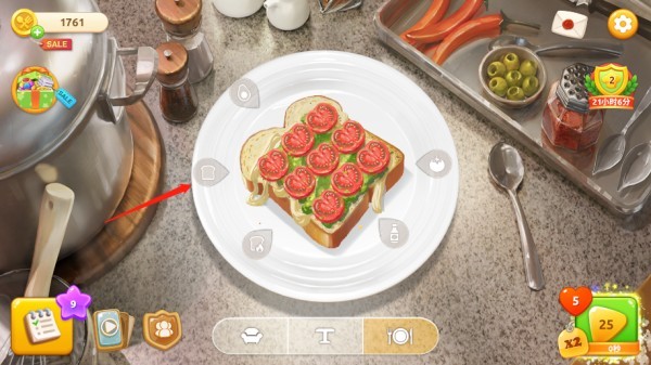 4、在菜品摆盘页面,你可以使用星星对菜肴进行精心设计,每次完成摆盘任务后都能获得丰厚奖励。