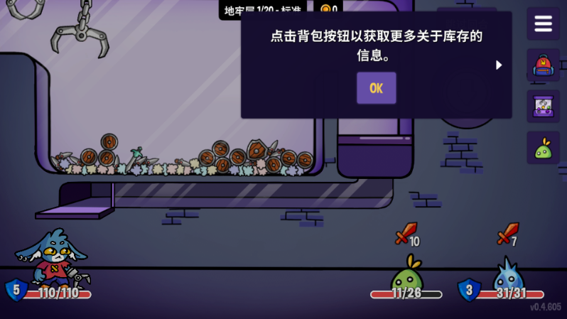 7、点击背包按钮以获取更多关于库存的信息。