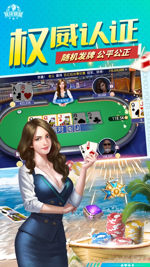 德州扑扑克苹果版是一款支持单机与联网双模式的棋牌游戏,汇聚了丰富多样的扑克玩法,同时融入经典街机电玩元素,并开放免费竞技场供玩家畅快对战。所有对局均由真人实时在线参与,还支持使用免费房卡创建自建房间,感兴趣的玩家快来下载体验吧!