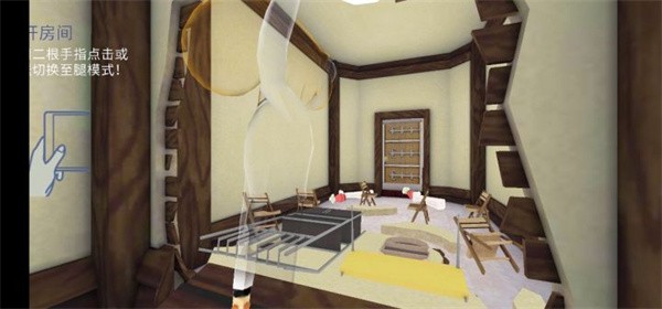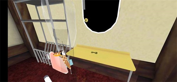 3、当桌子被清空后会出现一把钥匙,用它来打开橱柜。使用两根手指划动屏幕抬起手臂,将钥匙对准锁孔,再次点击即可开启柜门,需要依次打开两个锁孔;
