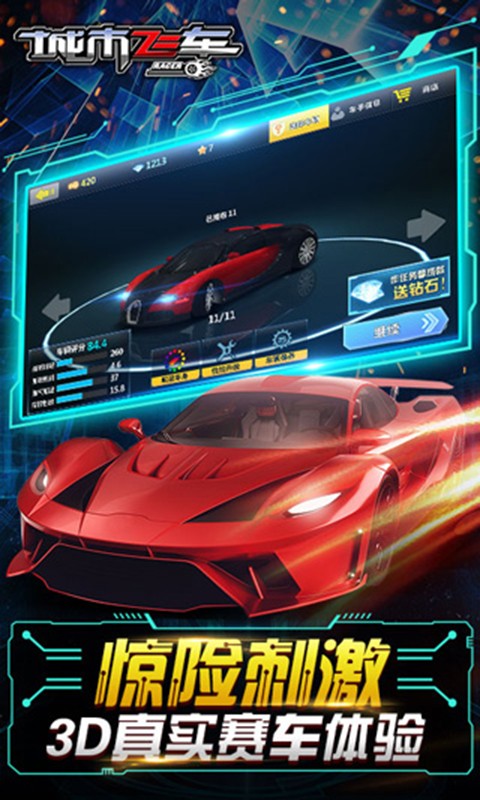 2、视觉效果生动,赛道环境细腻逼真,动态光影强化真实驾驶感受。