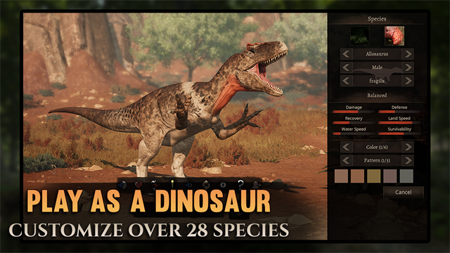 4、操控恐龙在史前世界中移动、攻击与狩猎,获取资源与经验。