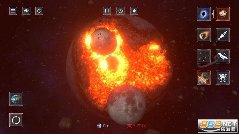 3、可以控制两个行星进行碰撞,能亲眼目睹那种壮观的场景;