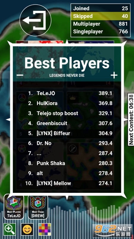 《领土territorial.io游戏》的游戏画面设计比较简单,整体的玩法类似于文明时代,我们将分别代表512个不同的国家去完成不同的策略运营,所有玩家们出生在一张地图上,每个人有一个大概代表战斗力的数值,每隔一段时间会随着你策略方案而发生变化。