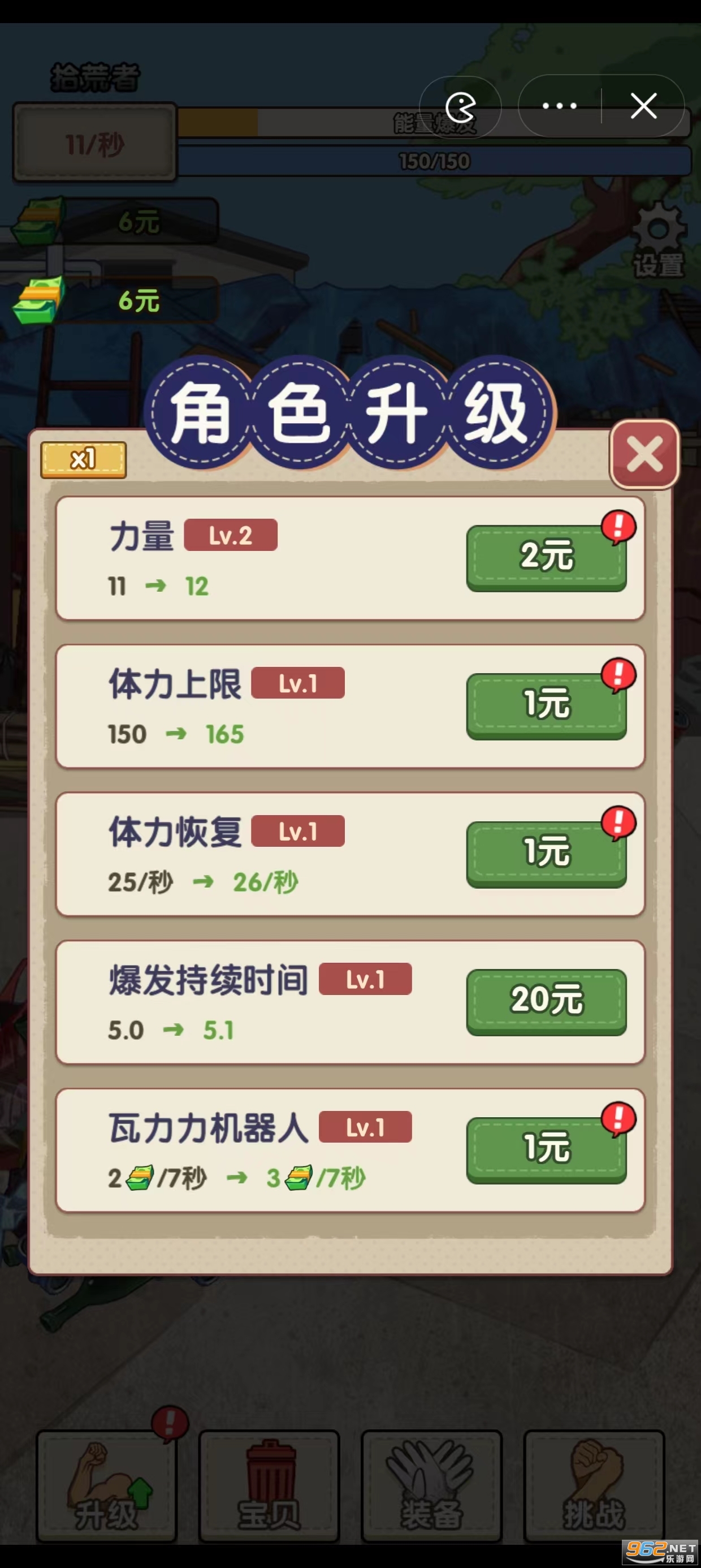 2.界面中可以随时查看当前的人物角色属性值,你需要操控他们不断的去拾取废品