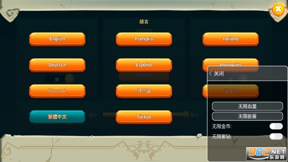 进入游戏,弹出LEGAL TERMS AND PRIVACY弹随意选择年龄,点击下方accept,进入游戏主菜单界面,点击左上角齿轮(设置)图标,进入菜单界面,点击language选项下方的English,进入language界面,点击下方繁体中文即可修改语言为中文。