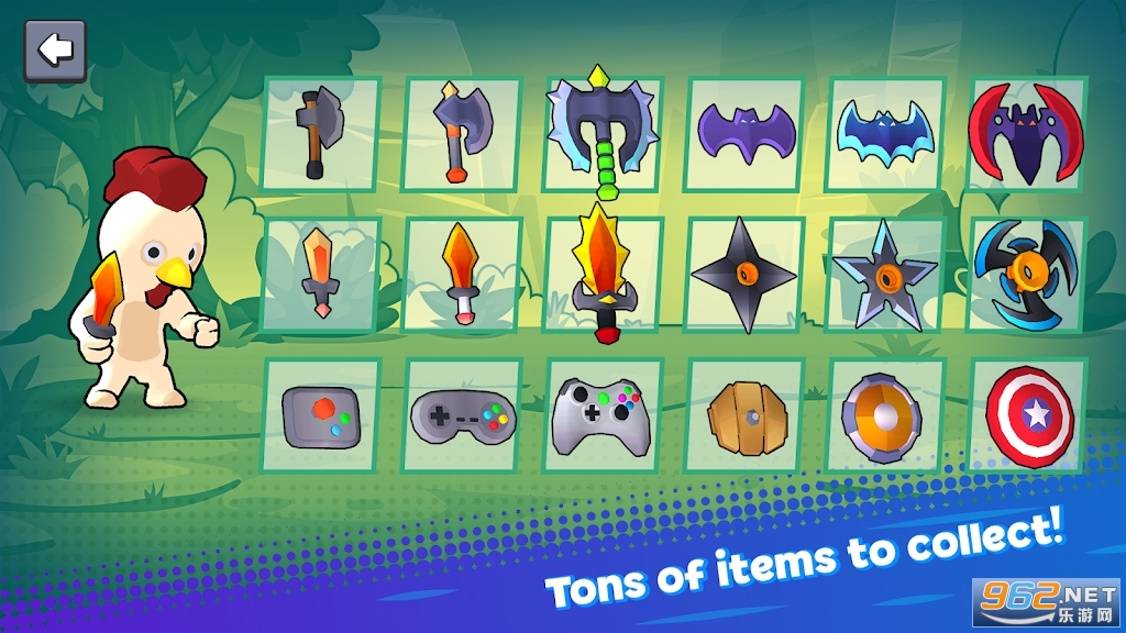 各种迷人的非常规武器,从手里剑和斧头到异想天开的选择,如披萨和盾牌。