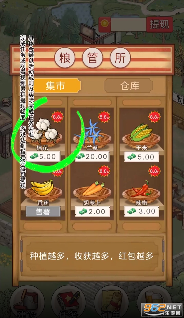 是真的,玩家种菜完成订单就可以获得红包,第一次可以直接提现0.3元,后续想要继续提现就需要完成更多订单才行。
