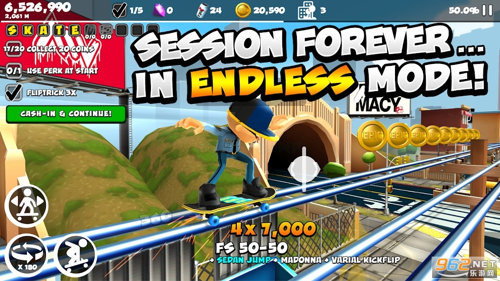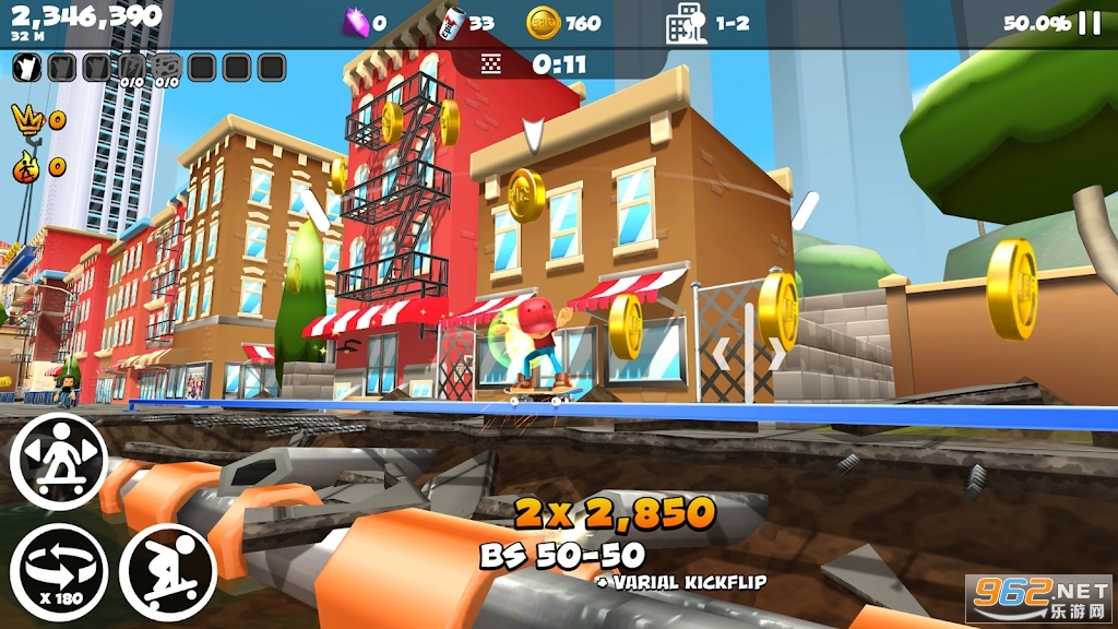 * 滑得最远,组合最大,解锁所有好东西,完成所有级别,成为下一个史诗级滑手。