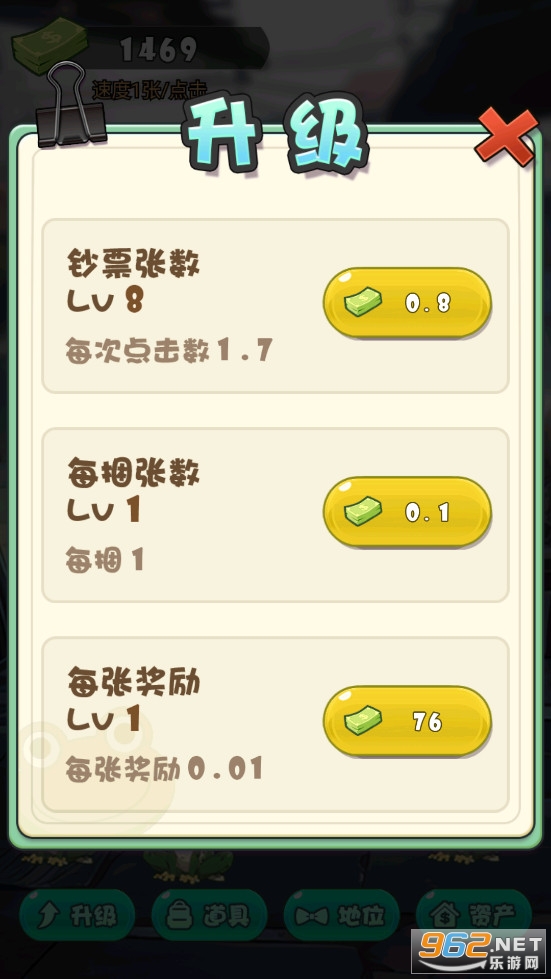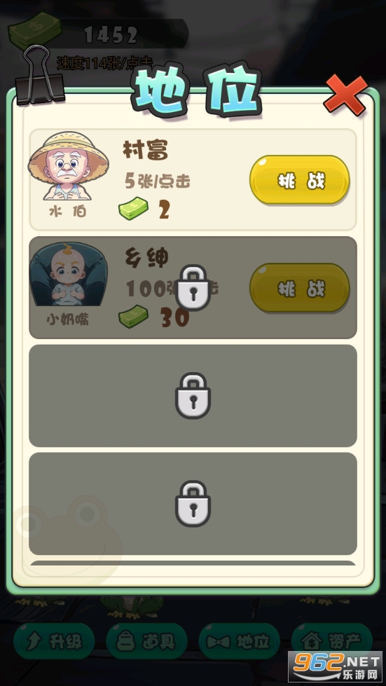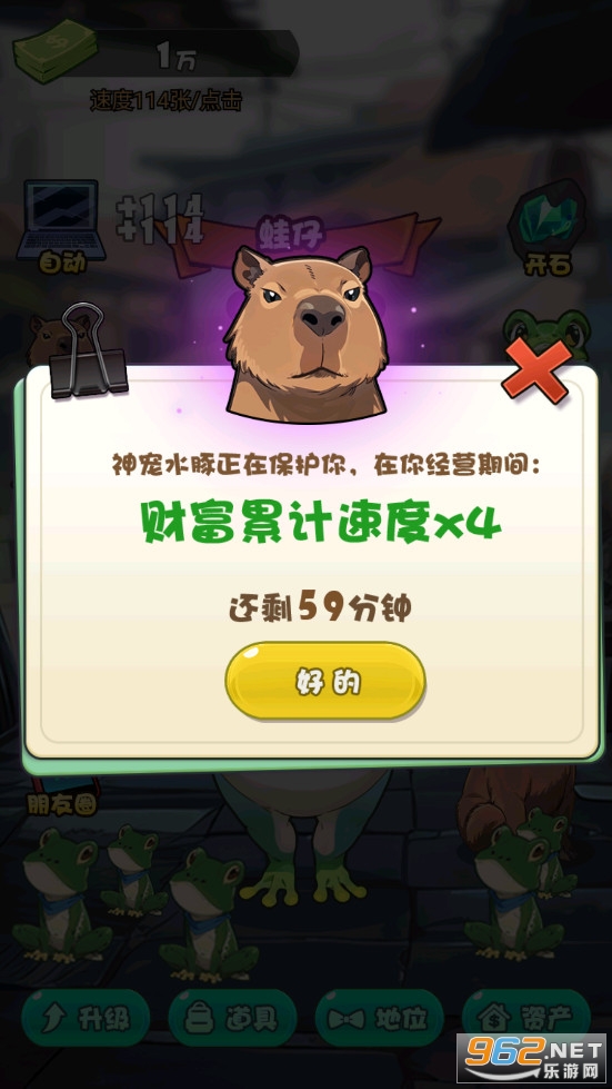 趣味的放置点击游戏,玩法比较简单,可以解锁各种道具,解锁各种buff,让青蛙能够更快的赚到钱,如果有连点器软件可以更轻松的体验游戏,有需要的朋友可以下载试试。