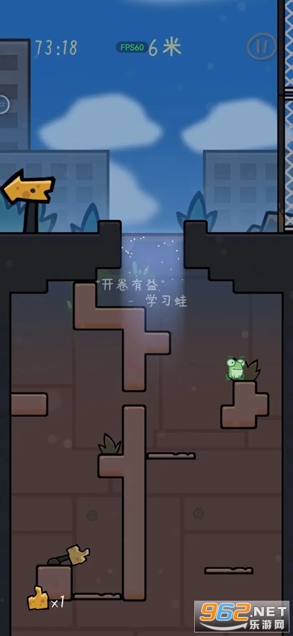 趣味的向上跳跃游戏,玩家需要控制一只小青蛙不断的向上跳跃到达地面上,跳出深井去外面的世界看看,难度还是很大的,不好掌握青蛙跳跃的力度,喜欢的朋友可以下载试试。
