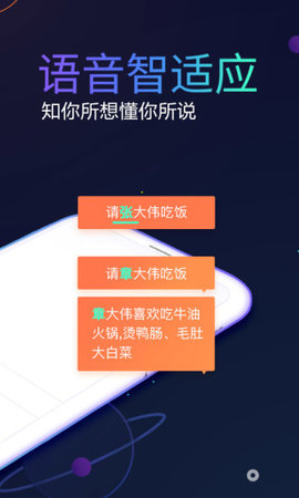 讯飞输入法智能语音输入,识别准确率98%;语音智适应,知你所想懂你所说;语音口令修改,一次修改精准识别;支持离线语音,没有流量也能语音输入。1分钟400字,语音输入带你飞!