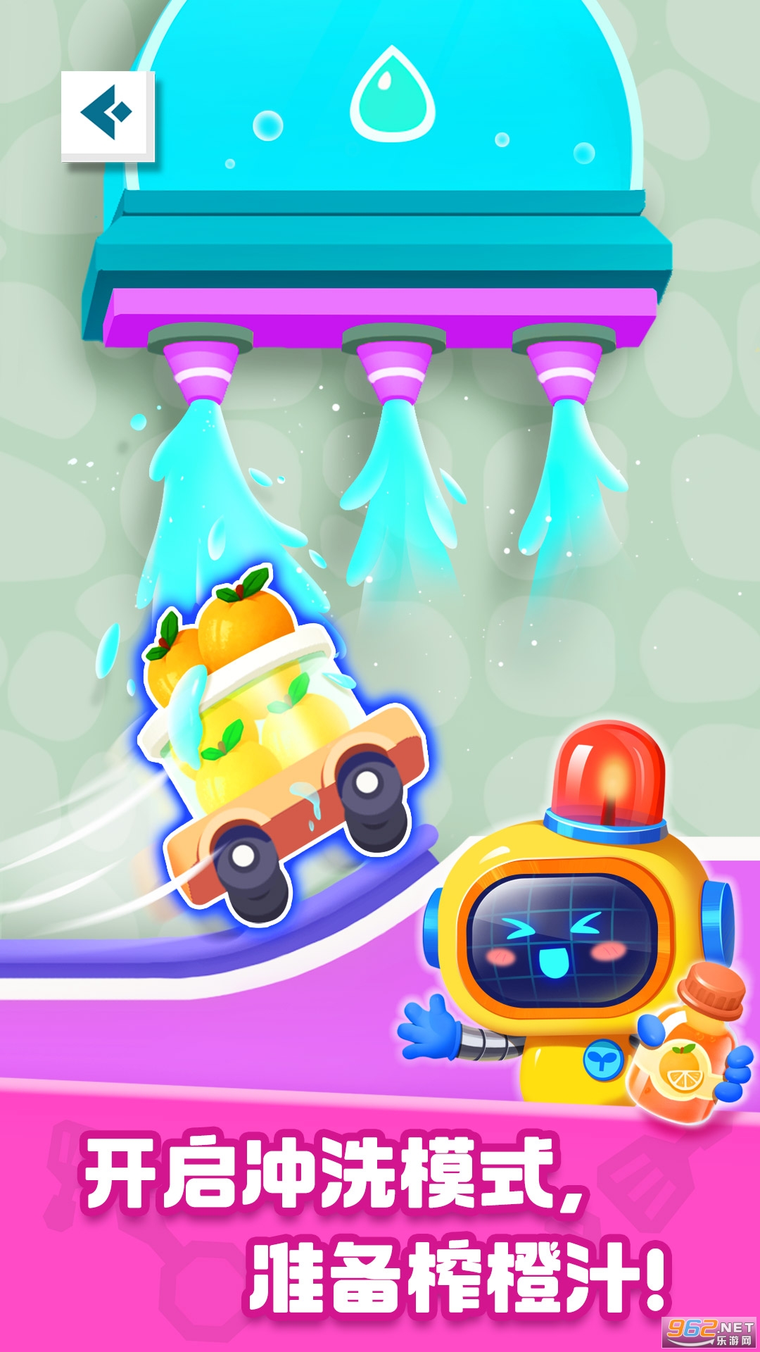 你快来帮忙:看准时机,开启弹跳按钮,辅助桃子抵达秋千,漂亮!经过滑动漏斗后,就到清洗池了,你别忘了开阀门,借助水的冲力让它们快速洗香香。