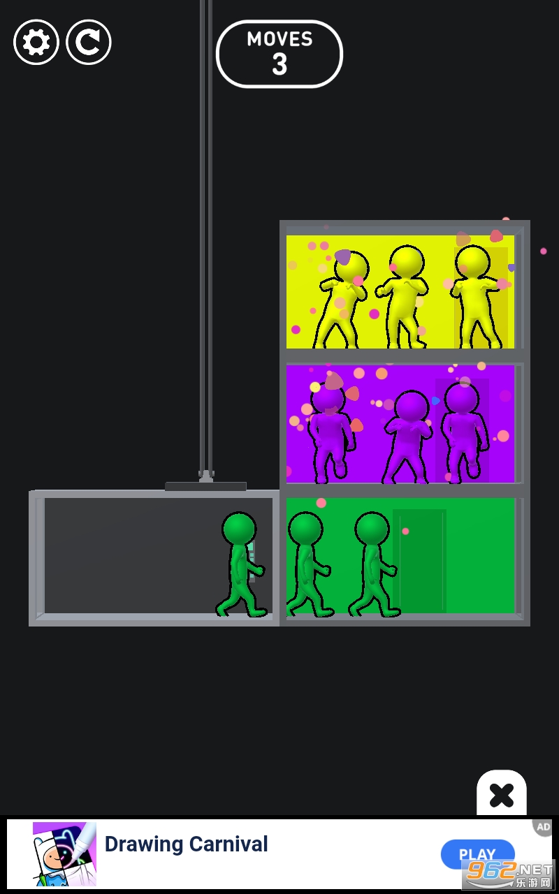 在这款充满乐趣和挑战的游戏中,做好准备,将人们移动到正确的楼层。这就是《电梯大分派》,一款令人兴奋的益智游戏!您的目标是在乘坐电梯时,战略性地拿起或留下相同颜色的小人儿,将他们留在正确的楼层。你需要提前思考才能解决各个关卡。