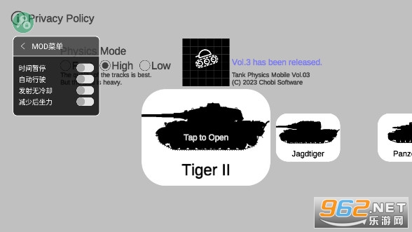 1、打开坦克物理模拟器3最新版,游戏内有多款坦克可供玩家选择。