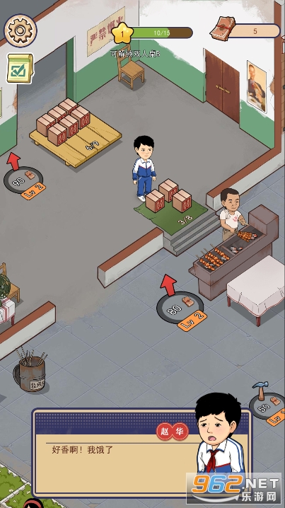 八零小店玩家将帮助爸爸经营一家烧烤店。这款游戏具有上世纪的复古绘画风格。在这里,你需要搬运货物,制作烧烤,为顾客服务,解锁更多的桌子,吸引许多顾客前来就餐,让烧烤店的生意越来越好,这样你就能赚更多的钱。