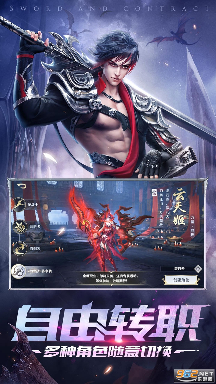 《剑与契约满v版》是一款画面精致的带有东方特色的即时战斗类角色扮演手游,游戏中玩家可以选择龙战士、歌吟者、影刺客等多种角色去冒险,有着丰富的场景和剧情可以体验,玩家可以收集神器装备、翅膀、坐骑等来提高角色的属性,还有着公会、姻缘等各种玩法。