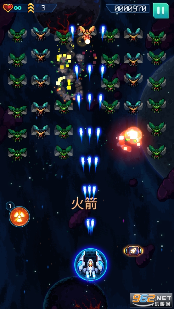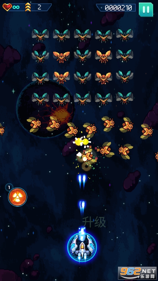 -使用硬币和宝石来升级或进化您的太空船,以对抗巨大的敌人和外星入侵者。