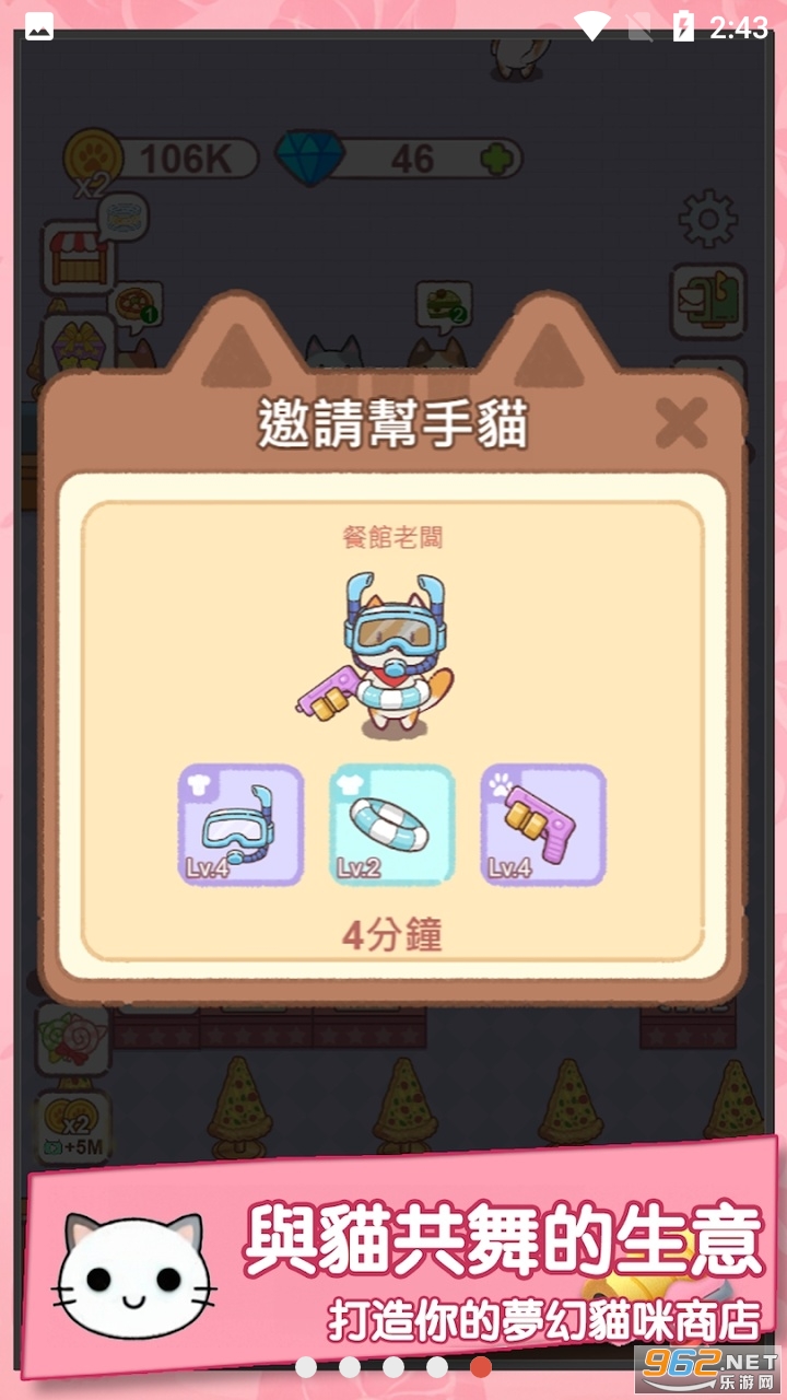 3、激萌无限的养成玩法,治愈系的游戏画风,解锁超多品种的猫咪。