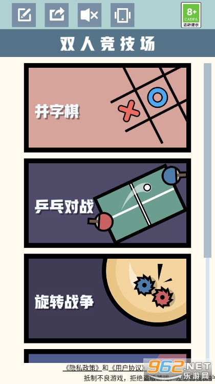 比较有意思的一款趣味对战小游戏,双人竞技场破解版免广告最新版你可以选择单人与电脑ai进行对战,也可以在双人模式当中选择自己比较喜欢的游戏类型与你的朋友对战,全程没有游戏广告,相信在这里你能够收获一份愉悦的游戏体验。