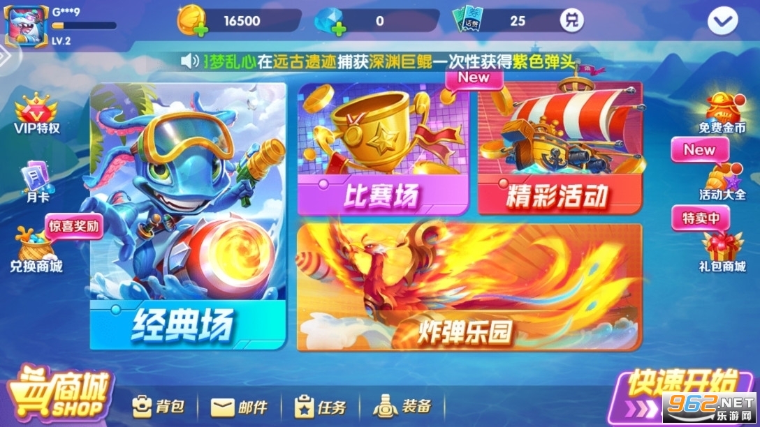1. 采用最新的UI设计,以深海景象为游戏背景,带给玩家视觉的盛宴