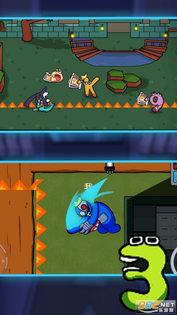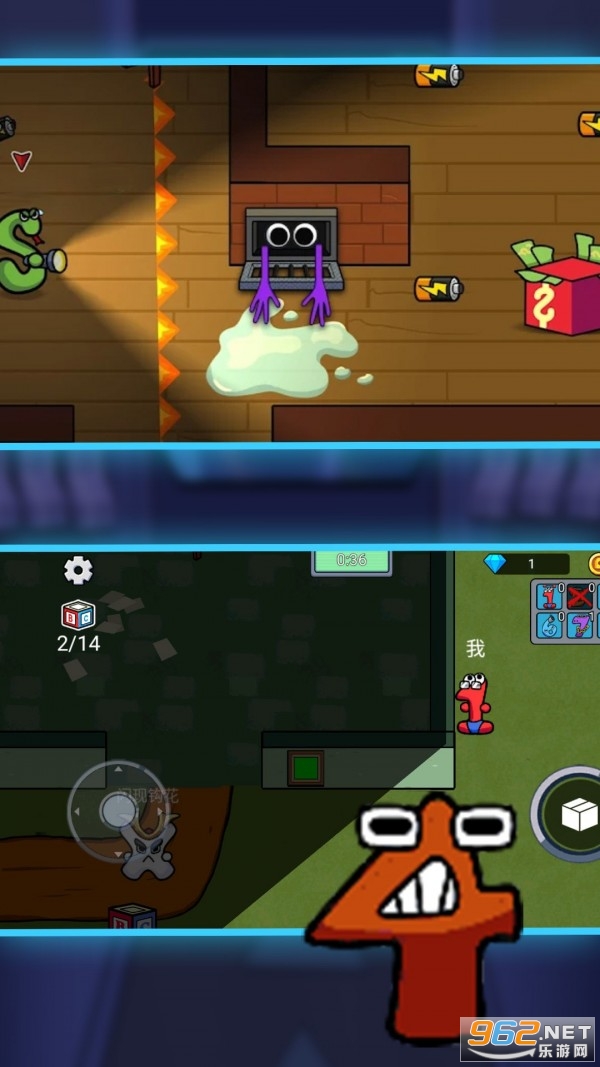 其中蓝色怪物会在地图上四处游荡,追寻没有藏在箱子中的角色。