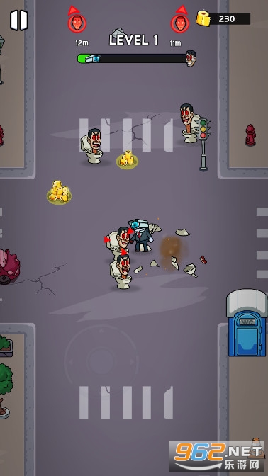 3、可怕的马桶人怪物正在追击冒名顶替者,帮助冒名顶替者逃离危险的怪异森林,使用手中的枪来点击射击附近所有的怪物