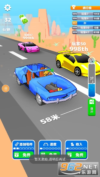 3、参加竞速比赛。购买装备和升级您的汽车,以赚取更多资金进入再投资。你必须快点!比赛即将开始!