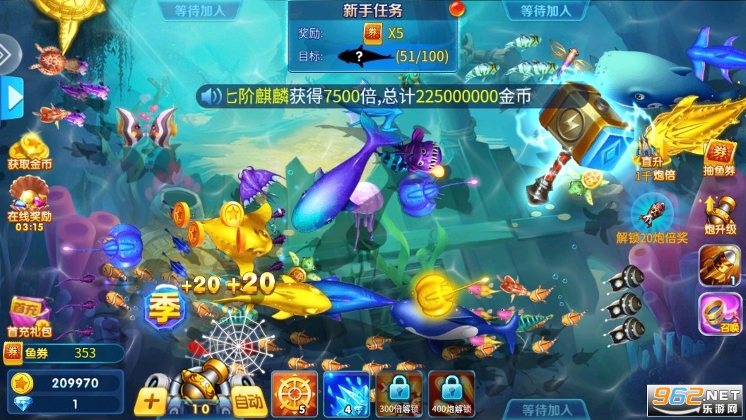 3、真人联机打鱼,万人同时在线,一炮百万,享受捕鱼乐趣。
