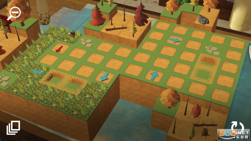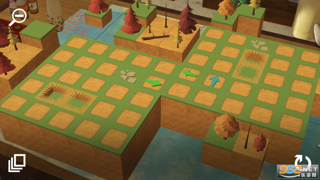 在每个谜题中,玩家必须引导兔子用草填满所有图块,同时避开障碍物并使用特殊图块并沿着路径完成目标。
