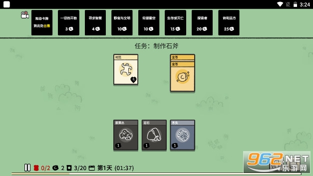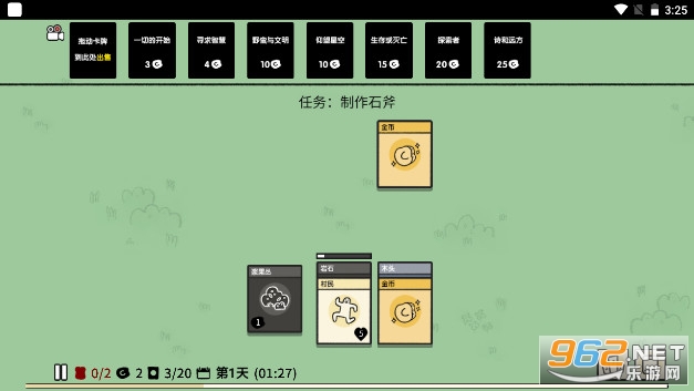 开局选择村民来建造村庄,你可以通过堆叠卡片来收集食物,建造结构,并与生物战斗。