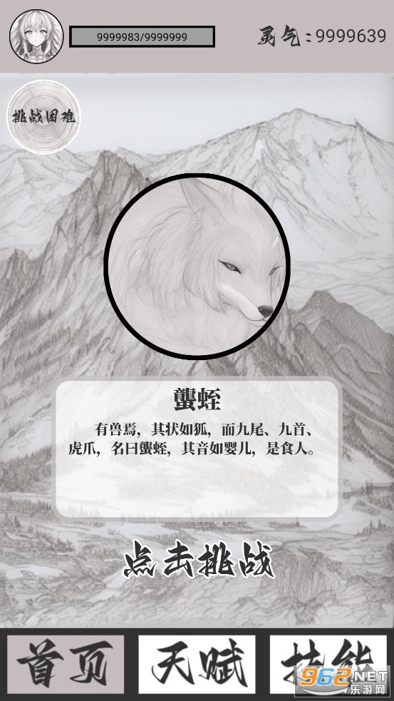 《山海了个经游戏》是一款画面简约的文字类养成游戏,游戏中玩家可以挑战九尾狐等众多的山海经异兽,可以学习各种技能来提高角色的属性,可以升级强化天赋来提高攻击力、血量等,可以不断的挑战异兽,收集各种异兽图鉴,挂机养成玩法。