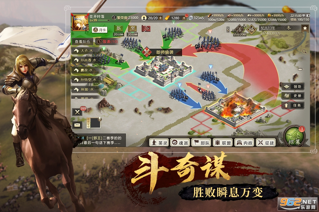 3. 风起云涌:结算时,根据同盟排名分别获取奖励。