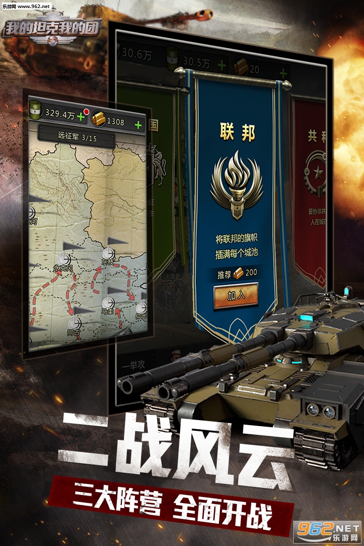 《我的坦克我的团》是一款军事题材的策略国战手游。游戏背景设定为以二战诺曼底登陆战役为开端的架空的世界观,玩家将扮演一名军队指挥官。游戏中玩家可以选择加入或创建自己的军团,和军团成员携手对抗其他军团;相互争夺资源、领土,以及世界霸主地位将成为玩家游戏的主要目的。