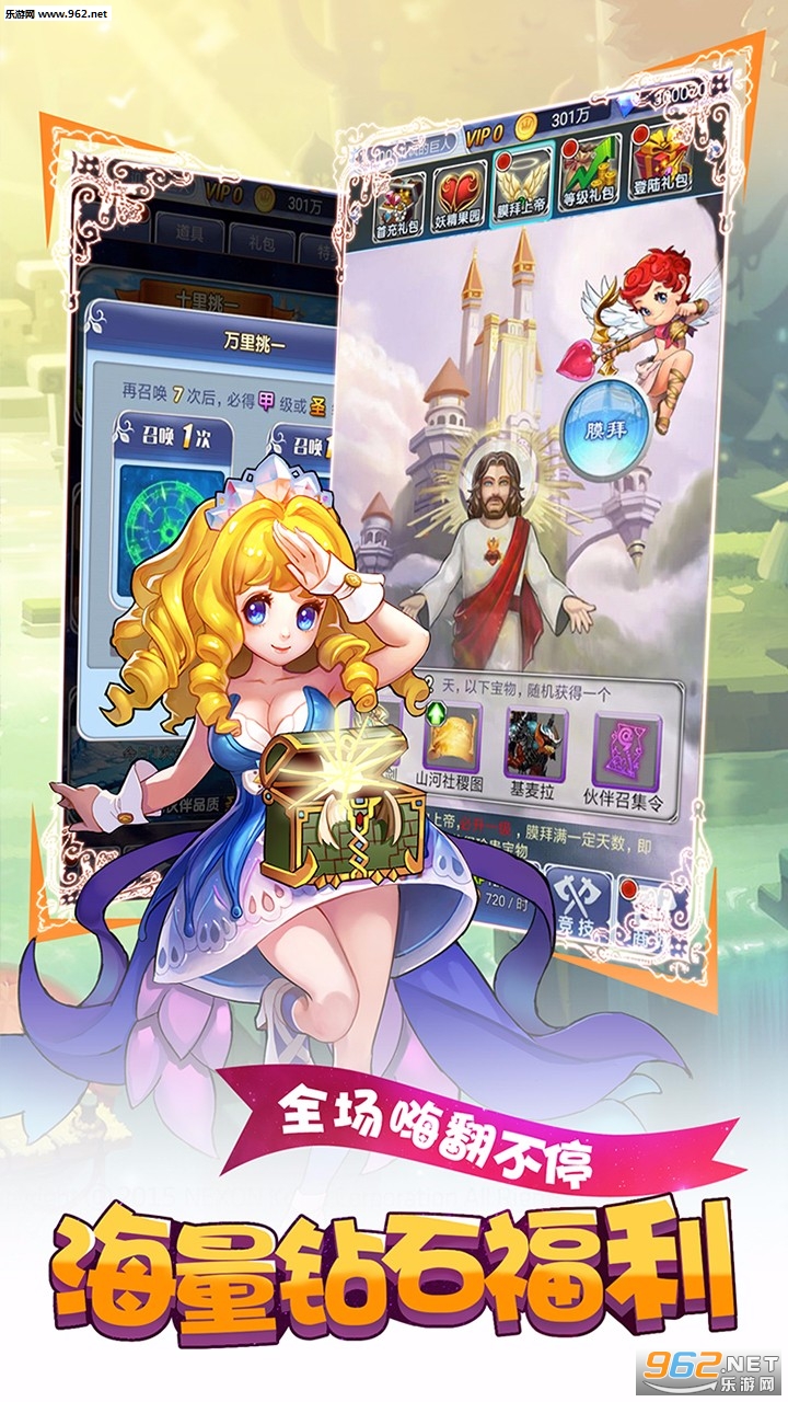 Q萌画风,打造专属萝莉 上百位卡牌角色,天使齐聚,神佛聚首,Q萌精灵激萌画风,专属萝莉养成,从此刻开始!